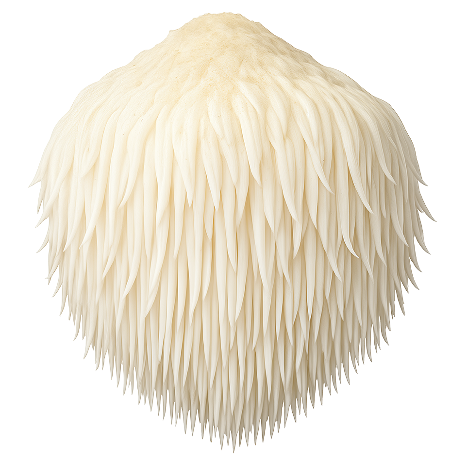 Lion’s mane (Hericium erinaceus) is traditionally used to sharpen focus, support memory, and nourish nerve health.